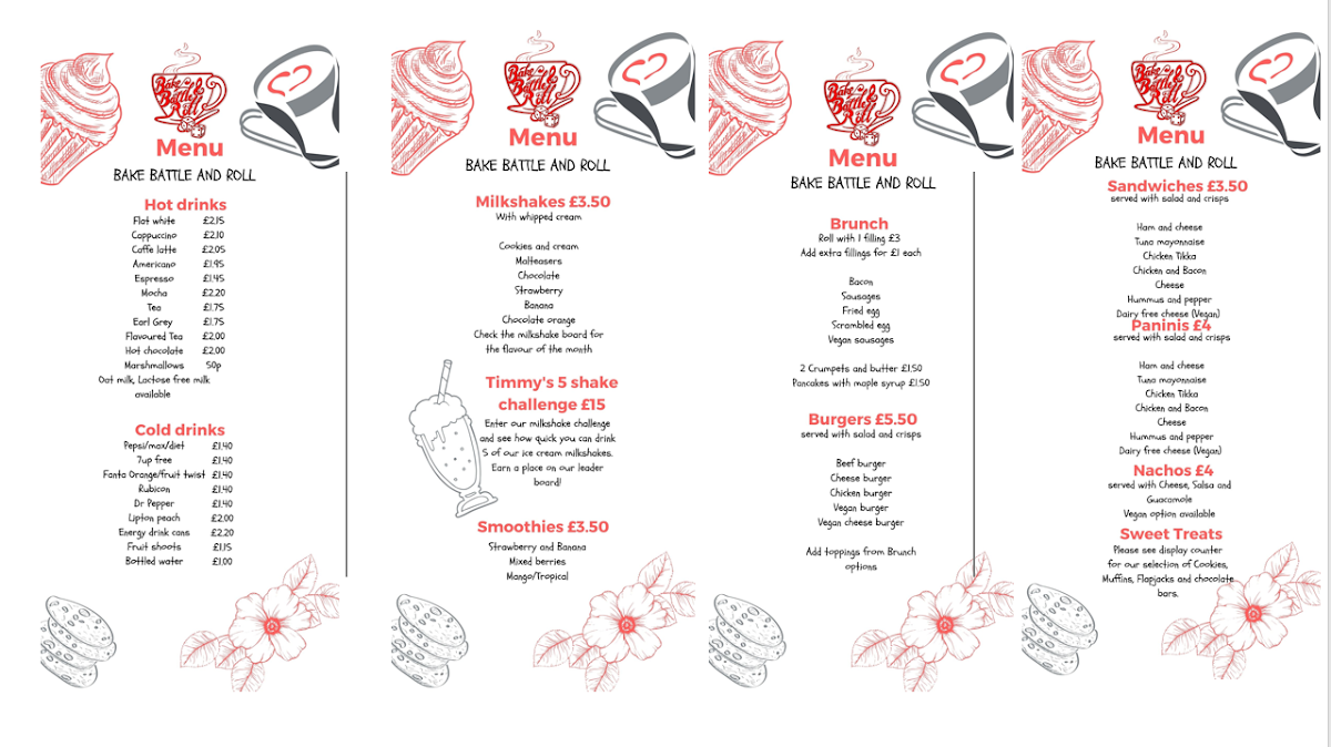 Welcome to Bake Battle Roll CIC, a vibrant café nestled at 24-26 Wood St, Doncaster. This unique spot marries the joy of board gaming with delightful culinary offerings. The menu features an enticing range of hot drinks like the creamy Flat White and rich Espresso, alongside refreshing cold options including Dr Pepper and Fanta Orange.